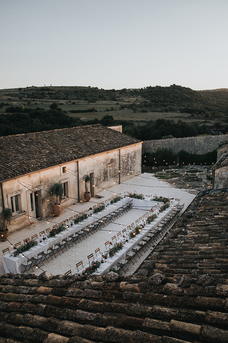 Inside the perfectly imperfect stone walls of a revived 1800s masseria, Evan and Joey said their vows under the Sicilian sun. Surrounded by orchards and gardens in the Noto countryside, Dimora delle Balze’s inherent beauty anchored their guests in the rustic yet refined natural setting. Vines and foliage were wrapped around chairs along the aisle enveloped in greenery.